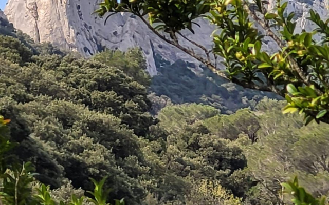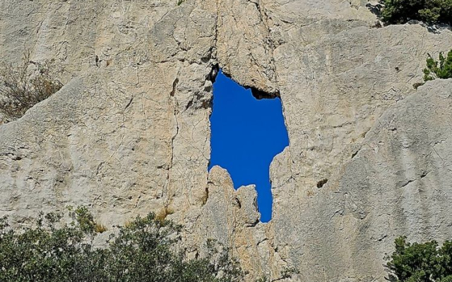 Nous prenons un sentier dans une forêt de type méditerranéen, plantée de pins sylvestres, de chênes verts et blancs. Nous sommes au cœur des Dentelles de Clapis. Cédric avait prévu de nous les faire traverser par la «brèche des 2 heures», mais la nichée d’un couple d’aigle de Bonelli nous en interdit l’accès. Nous laissons donc le sentier qui y mène, en suivons un autre qui nous conduit, par une montée très soutenue, vers la «brèche de la salle à manger». Elle nous offre une vue imprenable. De là nous apercevons, en contrebas, nos collègues de l’autre groupe. Nous redescendons en longeant les Dentelles de Clapis, puis le Grand Montmirail, site remarquable également, en faisant face aux Dentelles Sarrasines. Puis nous rejoignons nos collègues pour un pique nique en commun au col d’Alsau.