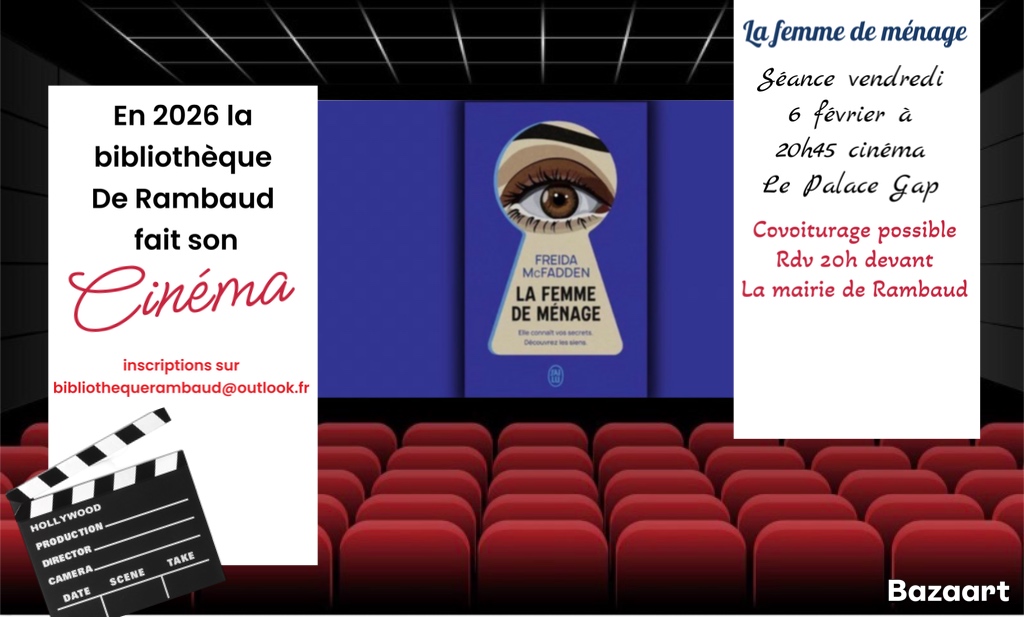 Et si on sortait ? En 2026 la bibliothèque de Rambaud innove en proposant des sorties cinéma lors de l’adaptation de romans sur le grand écran.